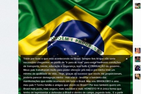 famoso a mostrar apoio às manifestações populares que acontecem no Brasil. Em